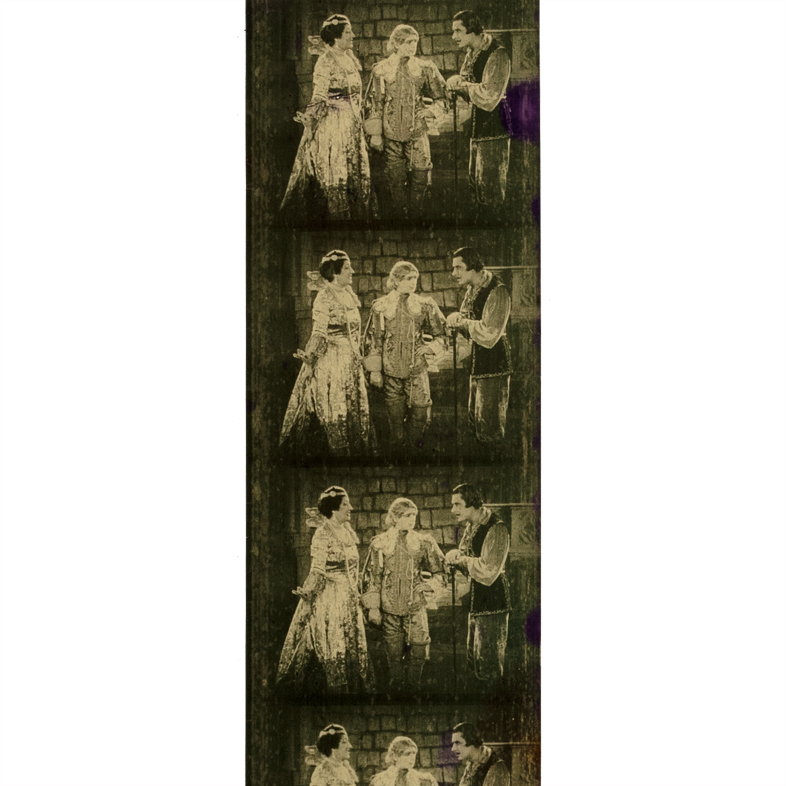 A lightweight, non-flammable film for home audiences. Cinelux is made from cellophane-derived ozaphane, the same material used for 16 mm Ozaphan films. Cinelux prints were unperforated. The film was pulled down by a beater mechanism. Ozaphane was too fragile for use in the camera, so Cinelux films were printed from conventional perforated negatives. Frame alignment was managed optically using a photocell to detect the opaque images of the negative perforations.