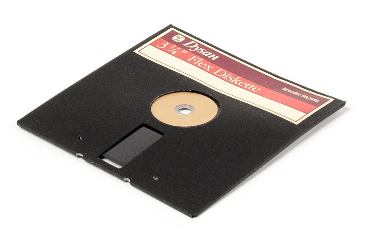 Came in a flexible sleeve like that of the 5.5 in. floppy, unlike the hard shell case for the Sony 3.5 in. floppy. Followed the 3¼ in. standard introduced by Tabor.