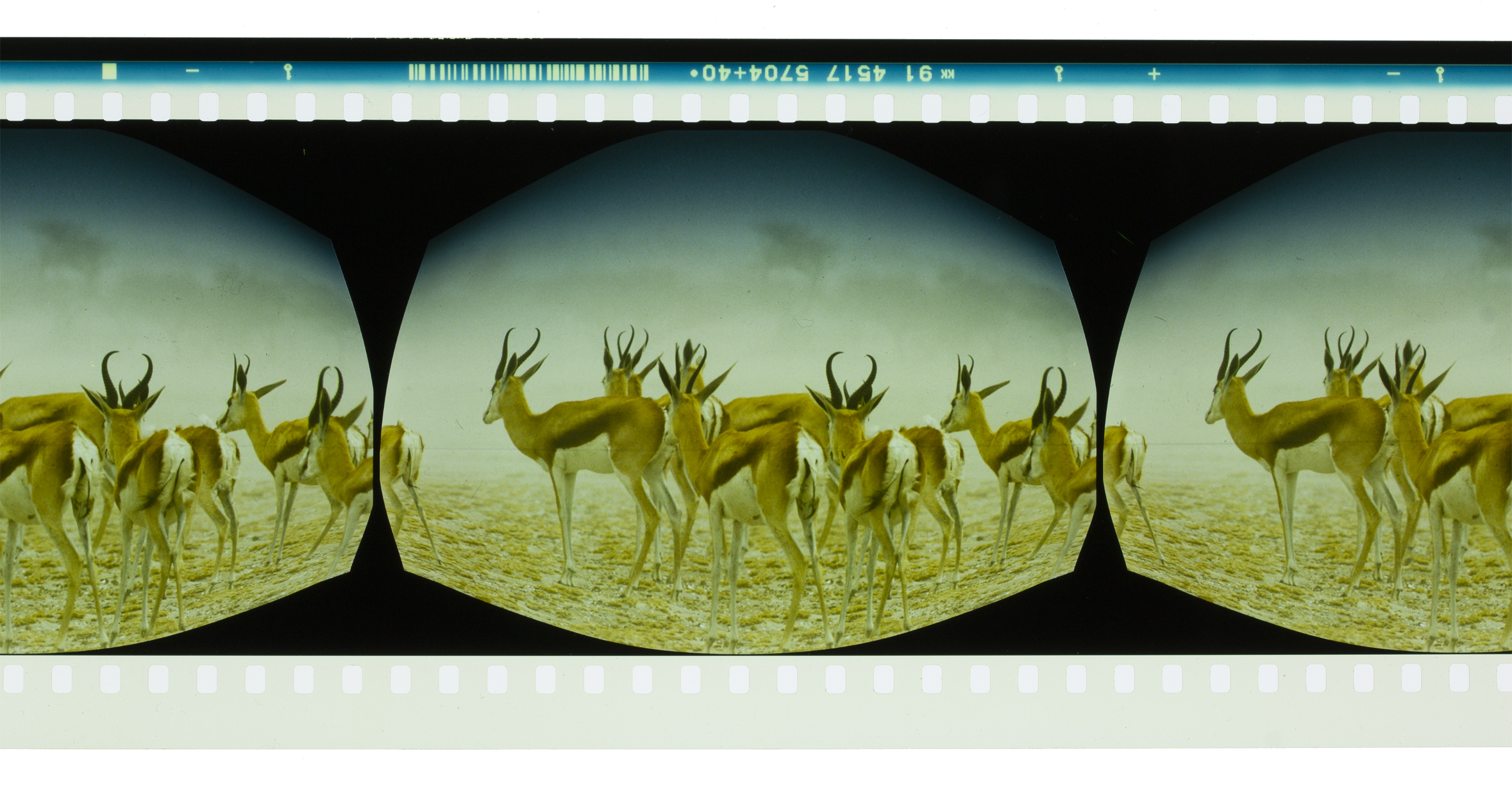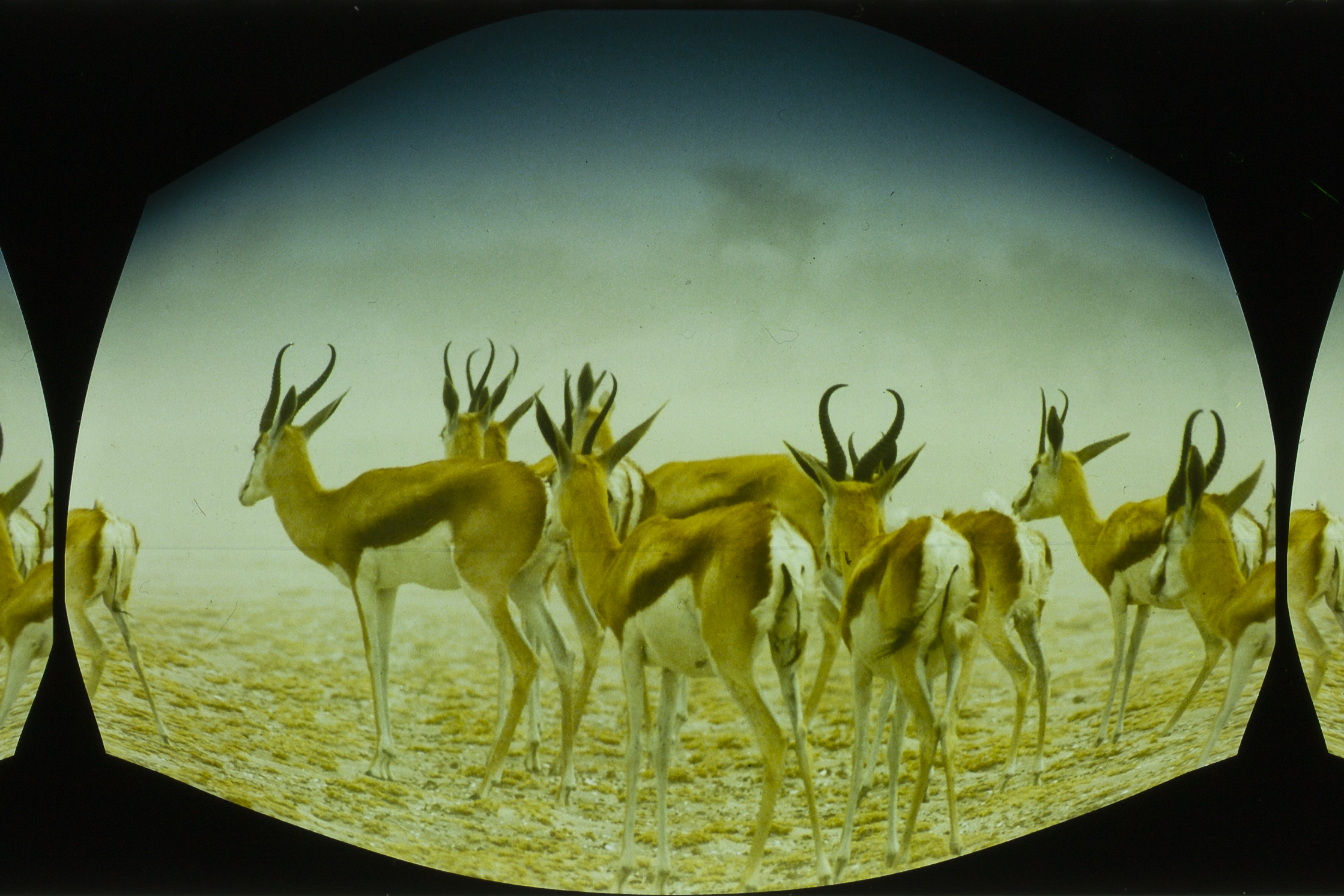 Like IMAX, Omnimax stores large frames on horizontally oriented 70 mm film. The camera uses a fisheye lens (hence the distortion of the images to the right) that allows it to capture an extremely wide view both vertically and horizontally. The film is then projected through a similar lens onto the interior of a spherical dome. The stadium seating is like that of an IMAX theater and the dome is oriented towards the front of the theater. It's an extreme version of the Cinerama curved screen that envelops the audience even more completely.
